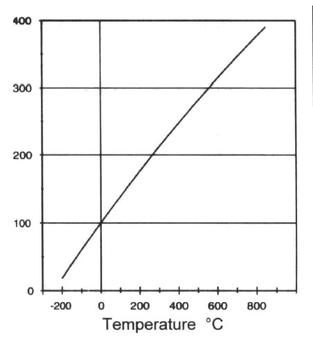 圖2是金屬鉑電阻的阻值隨溫度的變化關(guān)系,在一定的溫區(qū)內(nèi),電阻阻值的變化量與溫度基本呈線(xiàn)性。
