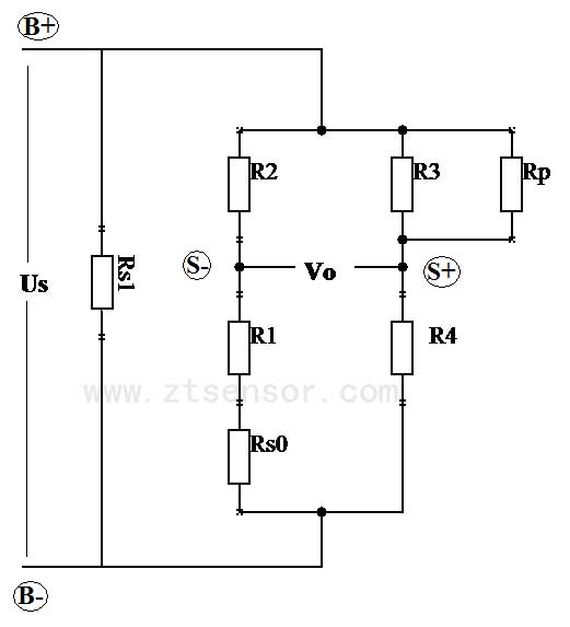 恒流供電下溫漂的電阻網(wǎng)絡(luò)補償技術(shù) 傳感器的熱零點漂移和熱靈敏度漂移是表征傳感器溫度性能的主要指標(biāo),擴散硅壓力敏感芯體具有很大的溫度系數(shù),無法直接應(yīng)用,必須先進(jìn)行溫漂補償。補償?shù)闹饕椒ㄊ遣捎煤懔鞴╇?,并在恒流供電的基礎(chǔ)上利用電阻網(wǎng)絡(luò)進(jìn)行補償。補償要解決的關(guān)鍵問題是電阻網(wǎng)絡(luò)的拓?fù)浣Y(jié)構(gòu)、熱零點漂移補償電阻的阻值、熱靈敏度漂移補償電阻的阻值。