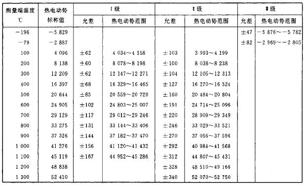 鎳鉻-鎳硅熱電偶電動勢及允差(單位:uV)