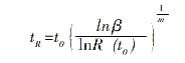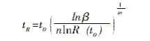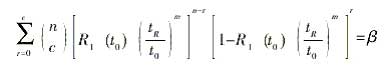 其中,n:進行壽命試驗樣品數(shù);r:在[[0,t]時間內(nèi)失效個數(shù);c:合格判定數(shù);to:任務(wù)時間;R1 (to):在規(guī)定任務(wù)時間內(nèi)的產(chǎn)品極限質(zhì)量,可記為LTPD;β:使用方風(fēng)險;m:形狀參數(shù);tR:可靠壽命。